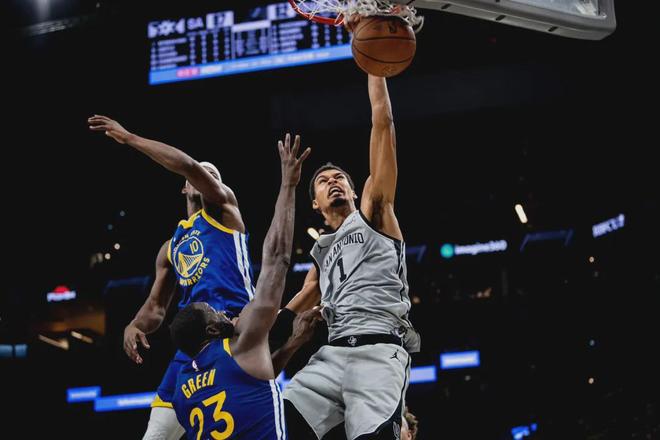 是第四节的一个回合,文班亚马遭遇格林和波杰姆斯基的包夹。